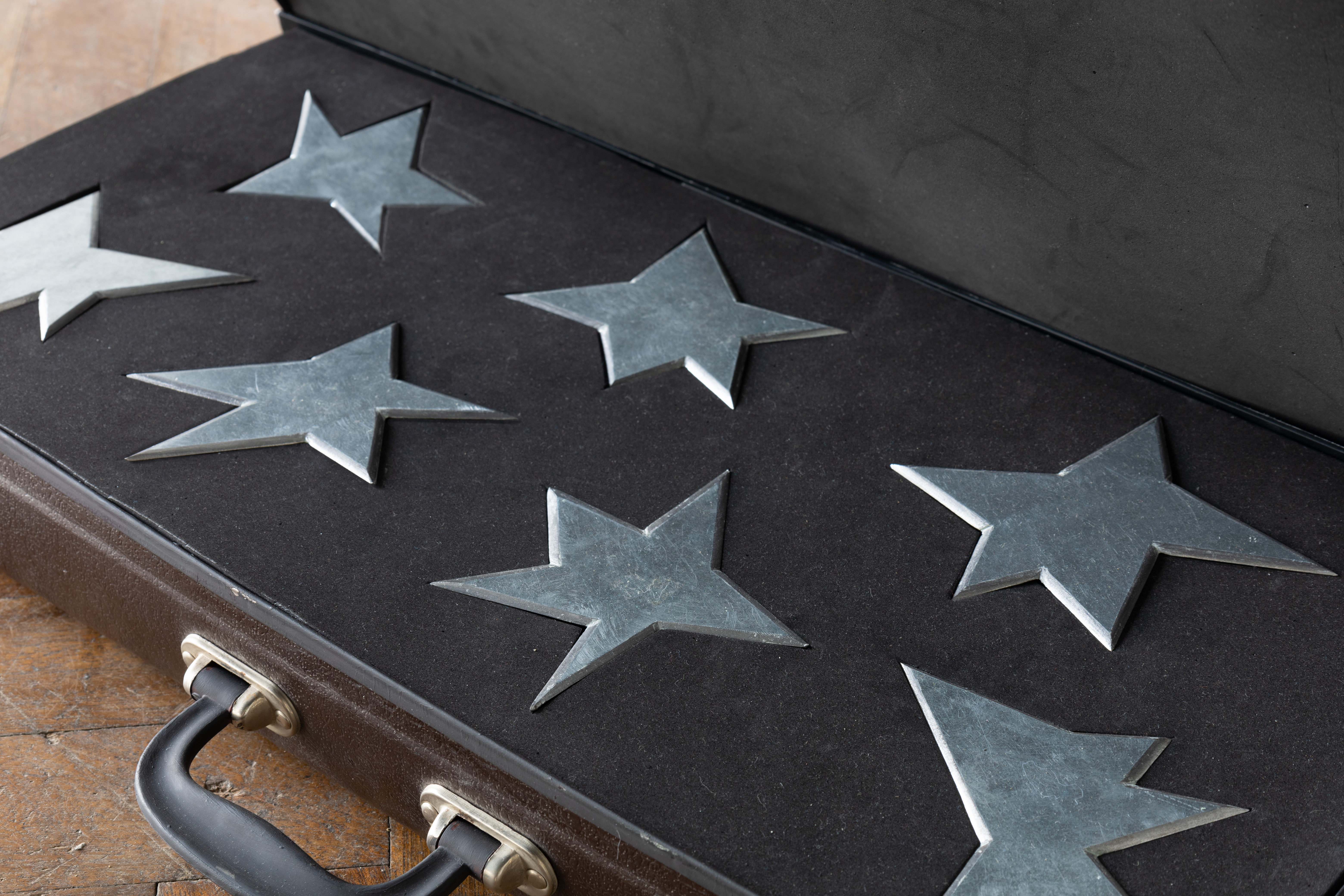 Après leur traversée de l’espace, les étoiles reposent dans une valise où chacune a sa place qui lui est propre. Elles perdent leur brillance, changent d’état, deviennent des étoiles déchues.