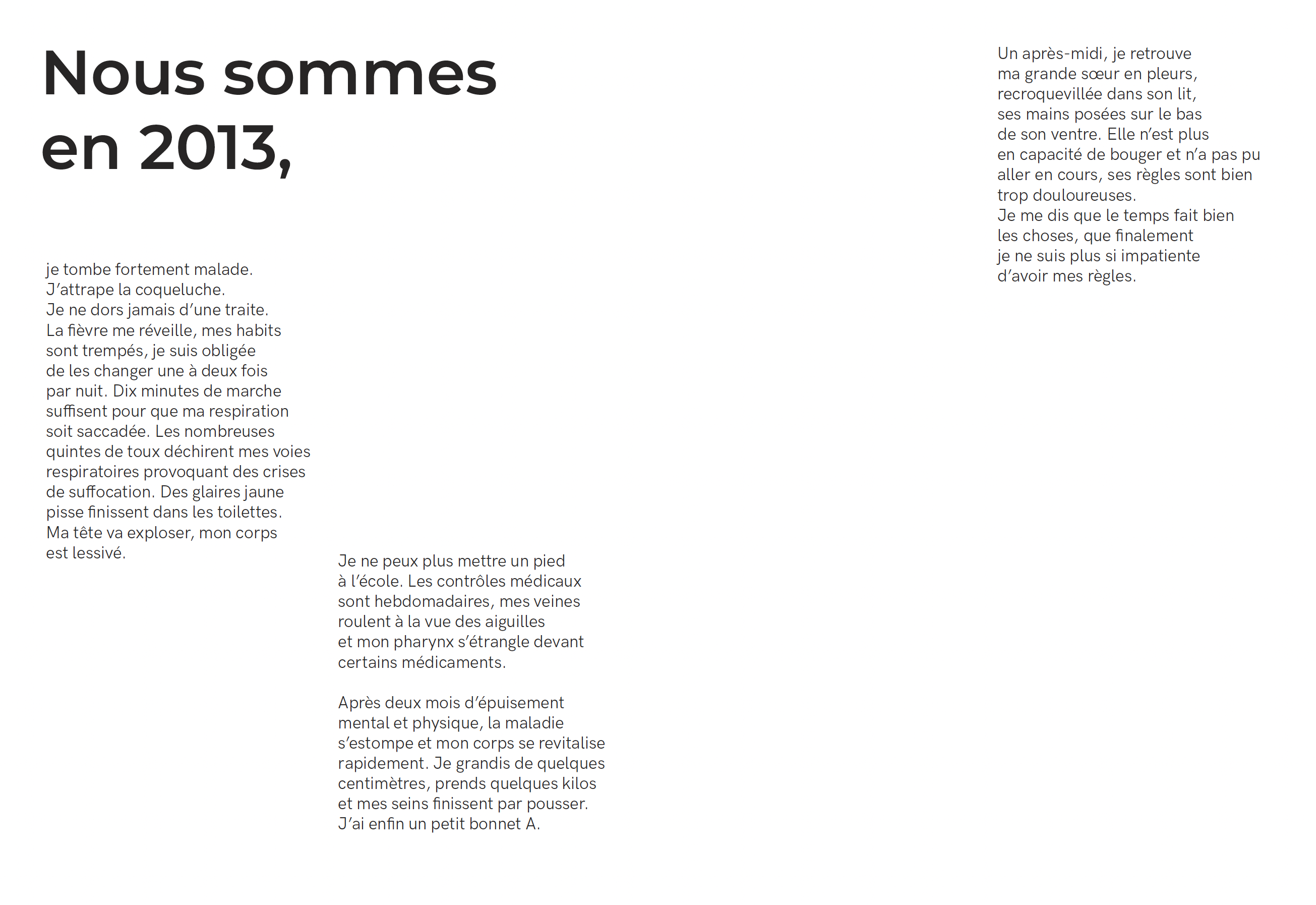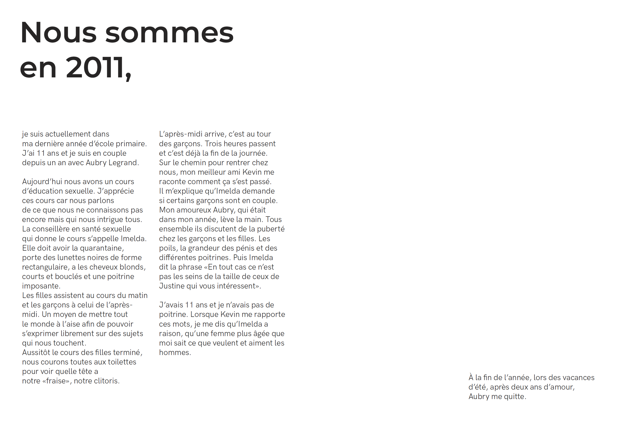 Cette édition, intitulée «Nous sommes», explore à travers une série d’anecdotes, mes expériences personnelles liées à mes seins. Images et textes présentent les différentes étapes de l’enfance, de la puberté, de l’adolescence et de l’âge adulte. Le carnet est organisé de manière chronologique et chaque anecdote débute par «Nous sommes en» suivi de l’année correspondante. La première histoire remonte à 2009, la dernière à 2022.