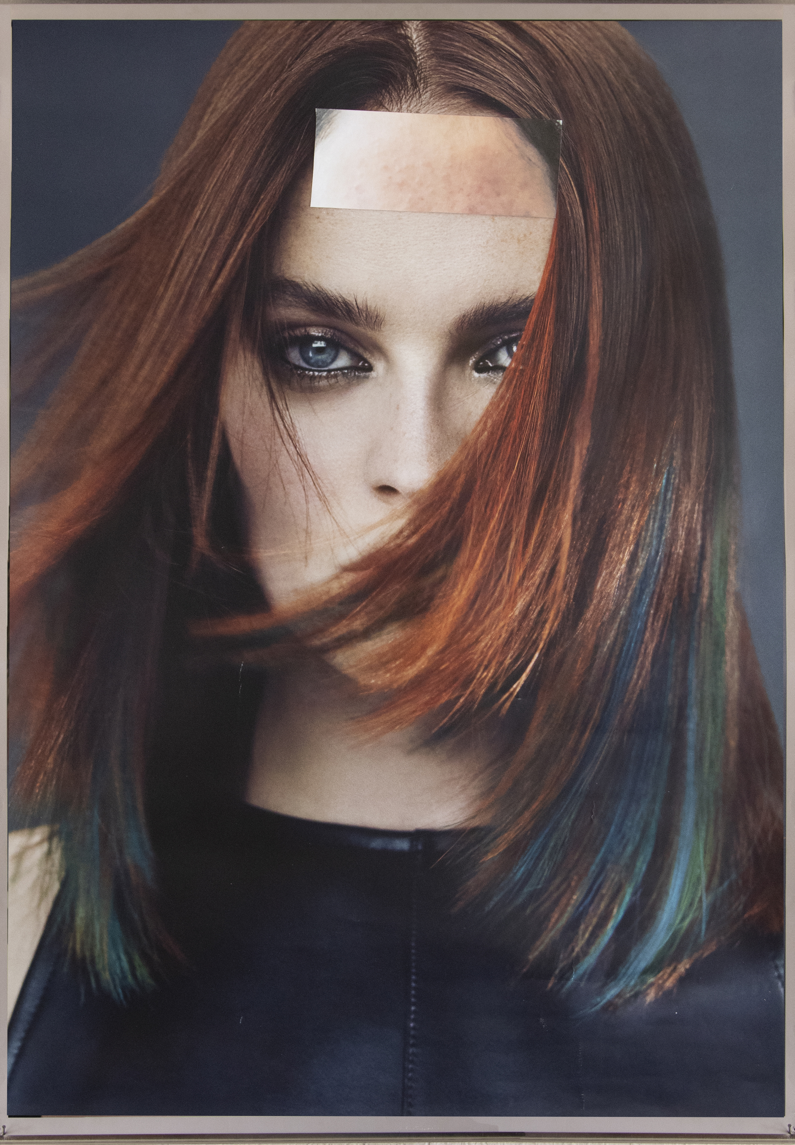 Nous ne voyons pratiquement jamais de l’acné sur des modèles photos. Pour y remédier et tenter de normaliser les boutons, je me suis appropriée des affiches publicitaires de cosmétiques en y déposant mon acné juvénile.